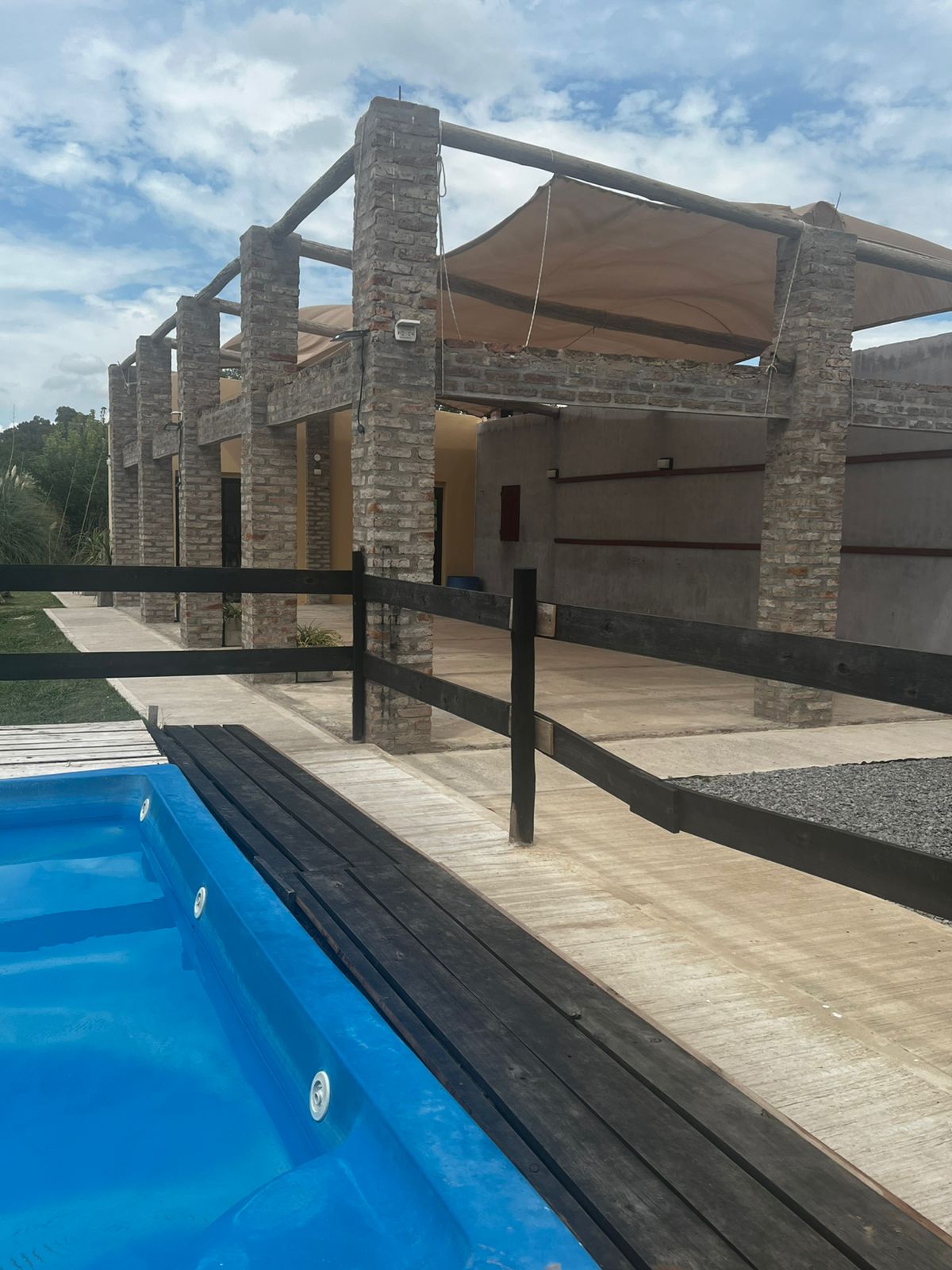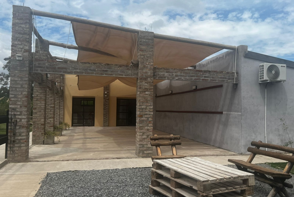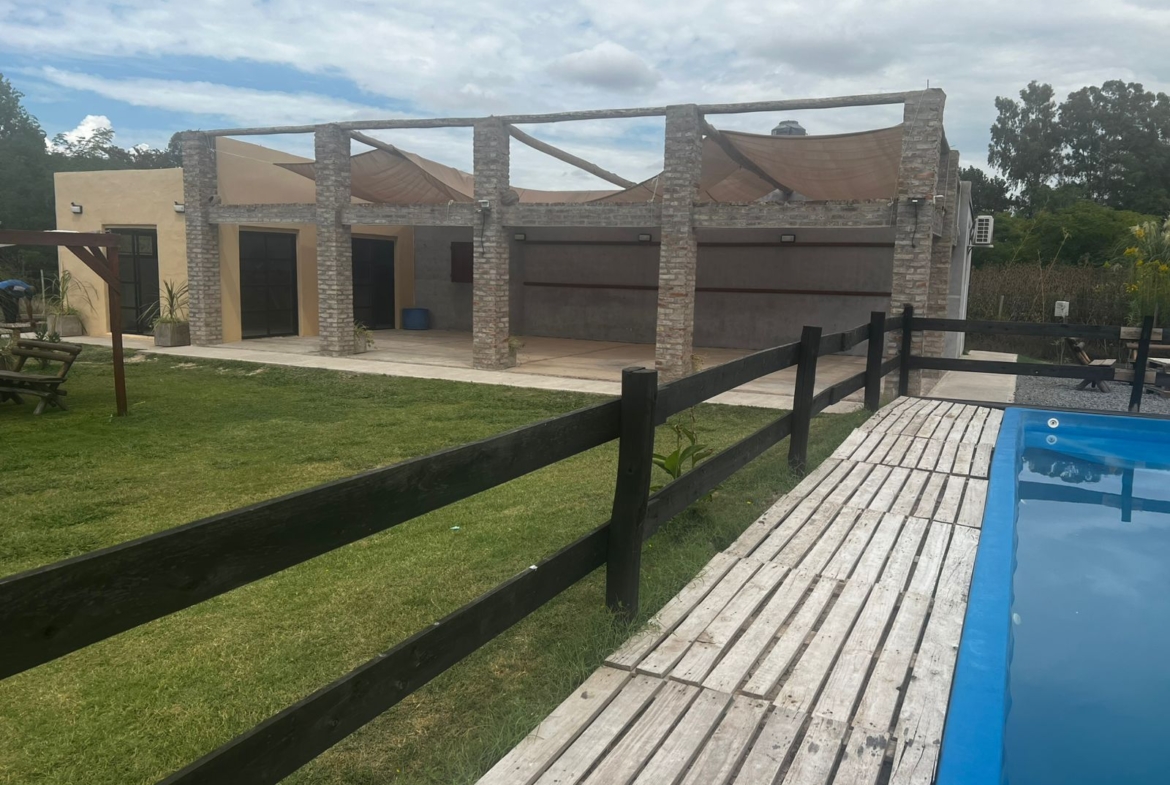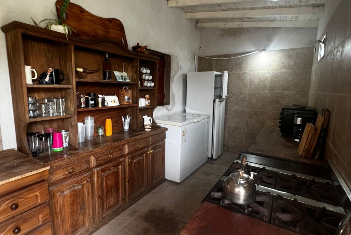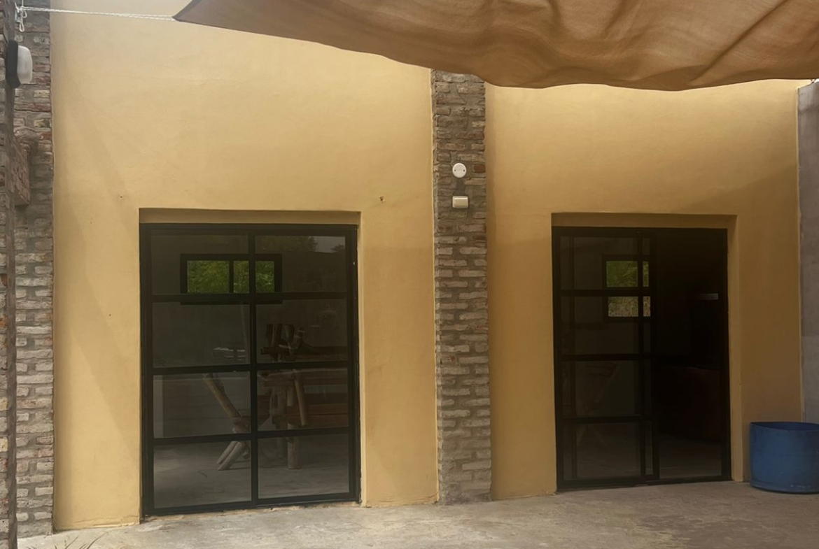 El Predio consiste en un gran parque con una construcción cerrada de baño y cocina – diseñado para dos baños y vestuario- y una parte, base de hormigón semicubierta, con barra, sin techar, de 12 x 6 mts.