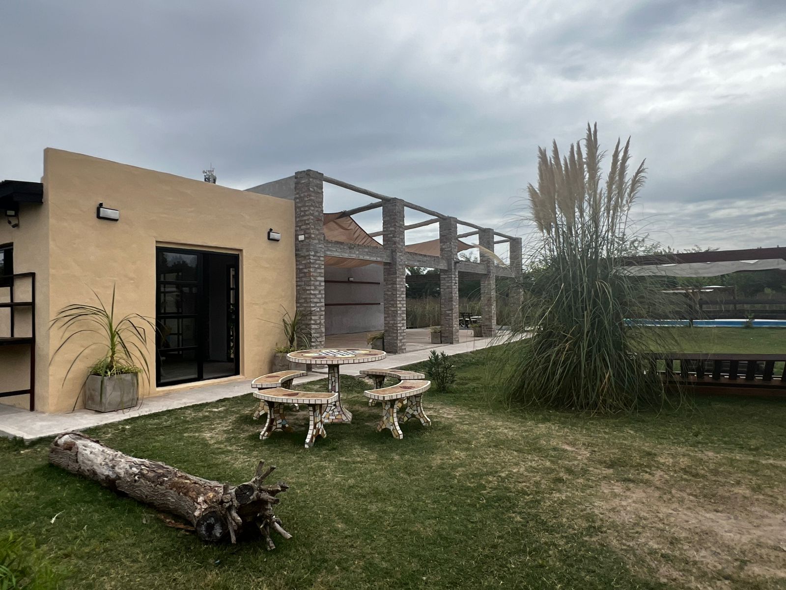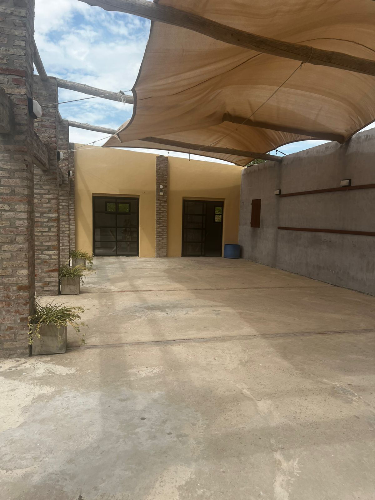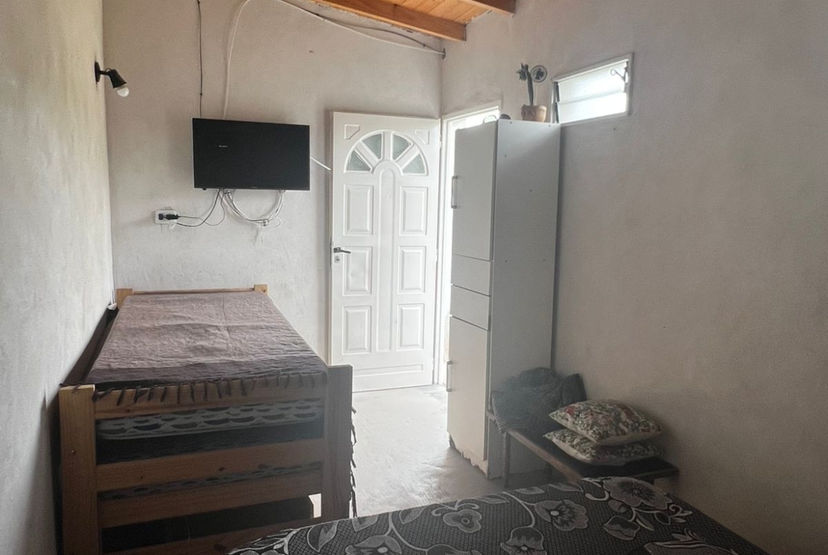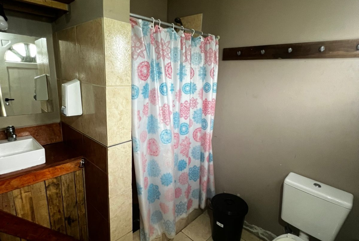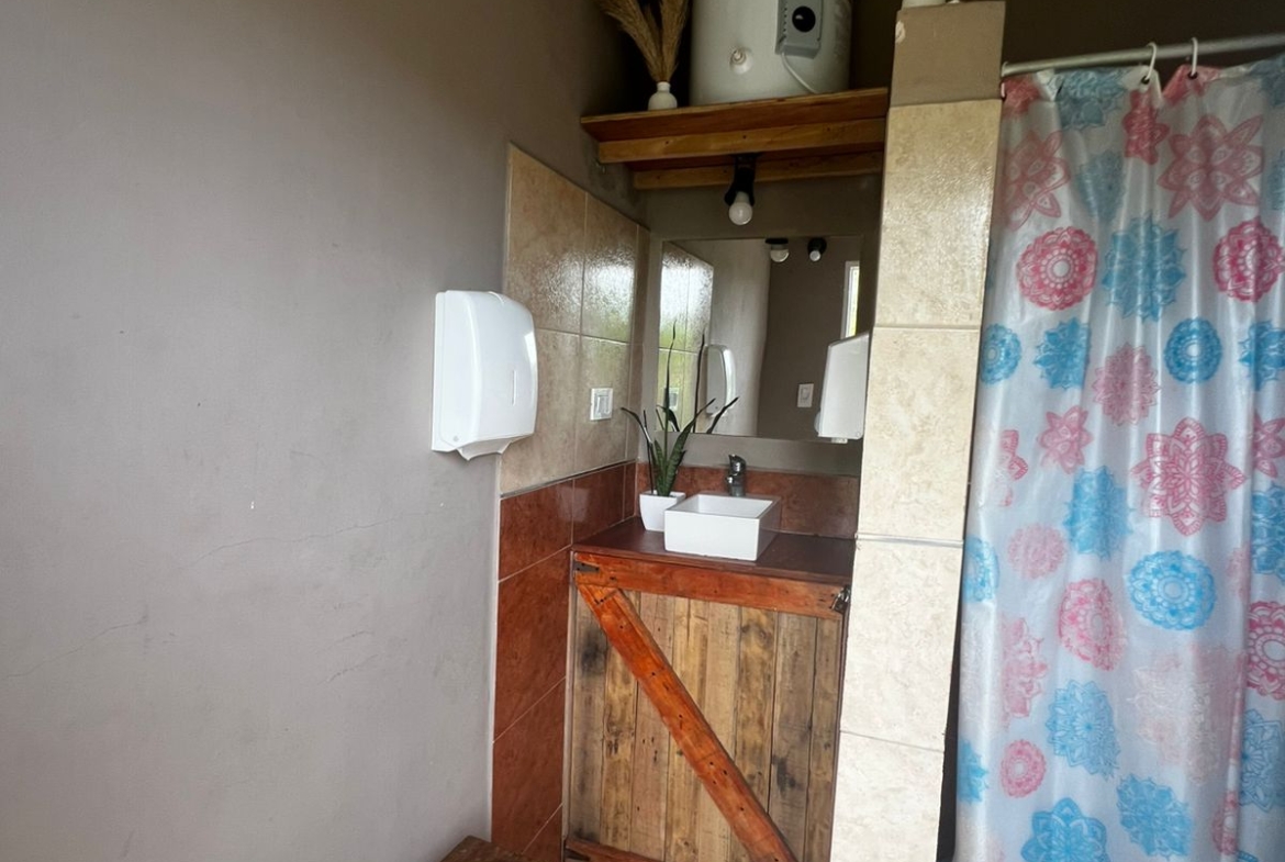 El Predio consiste en un gran parque con una construcción cerrada de baño y cocina – diseñado para dos baños y vestuario- y una parte, base de hormigón semicubierta, con barra, sin techar, de 12 x 6 mts.
