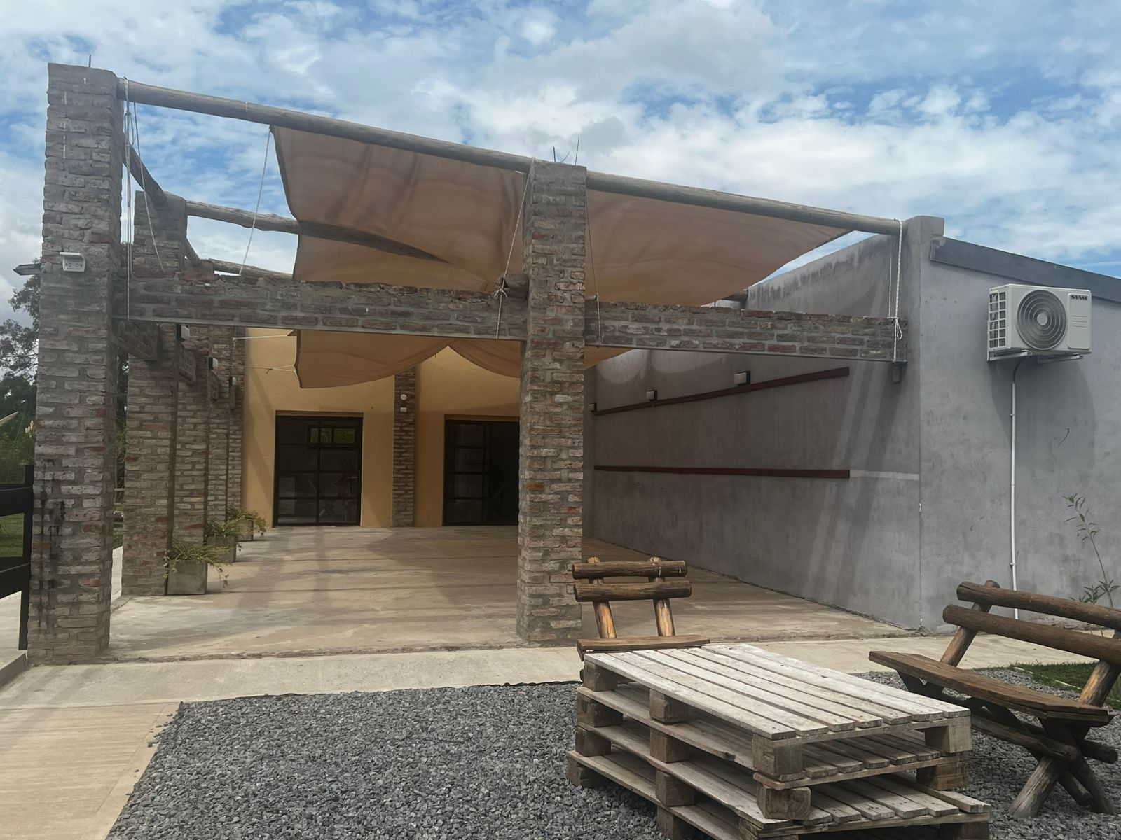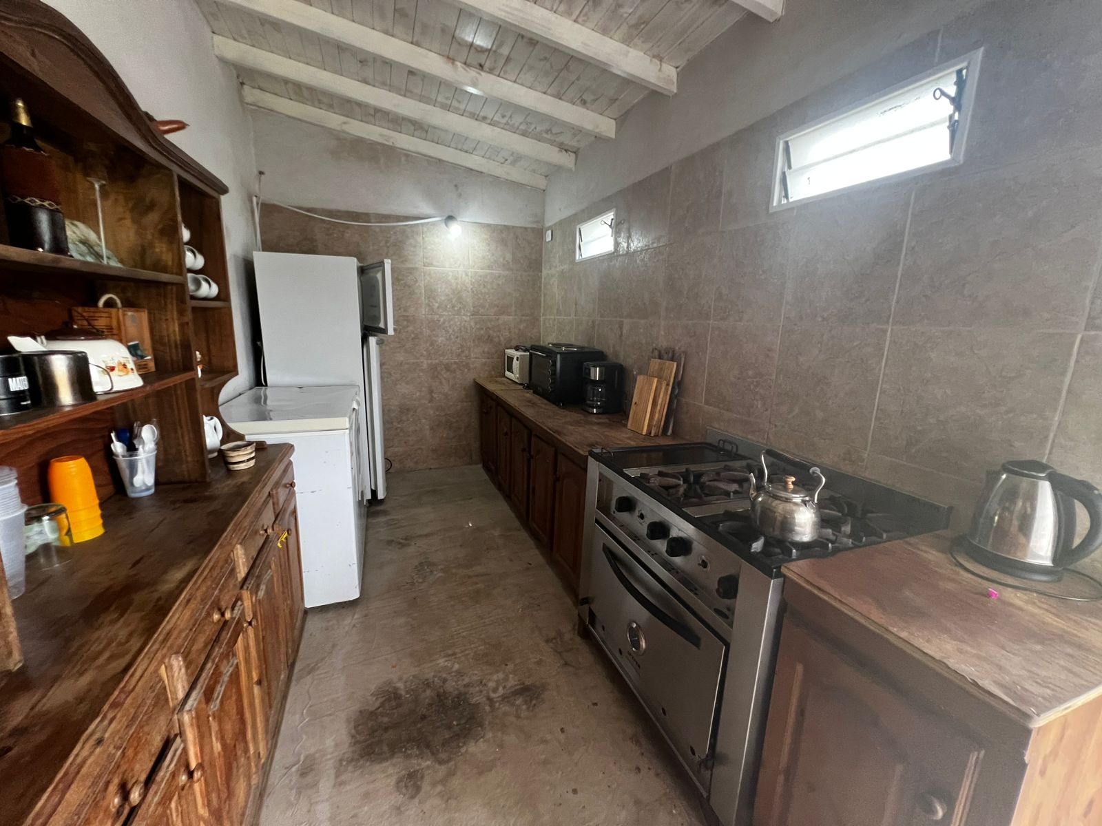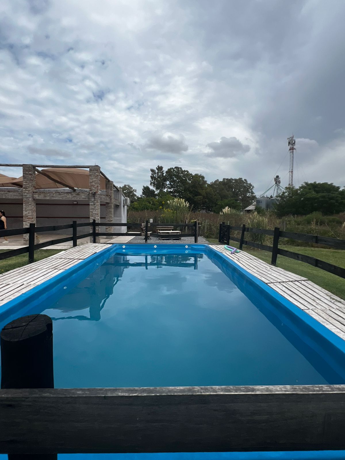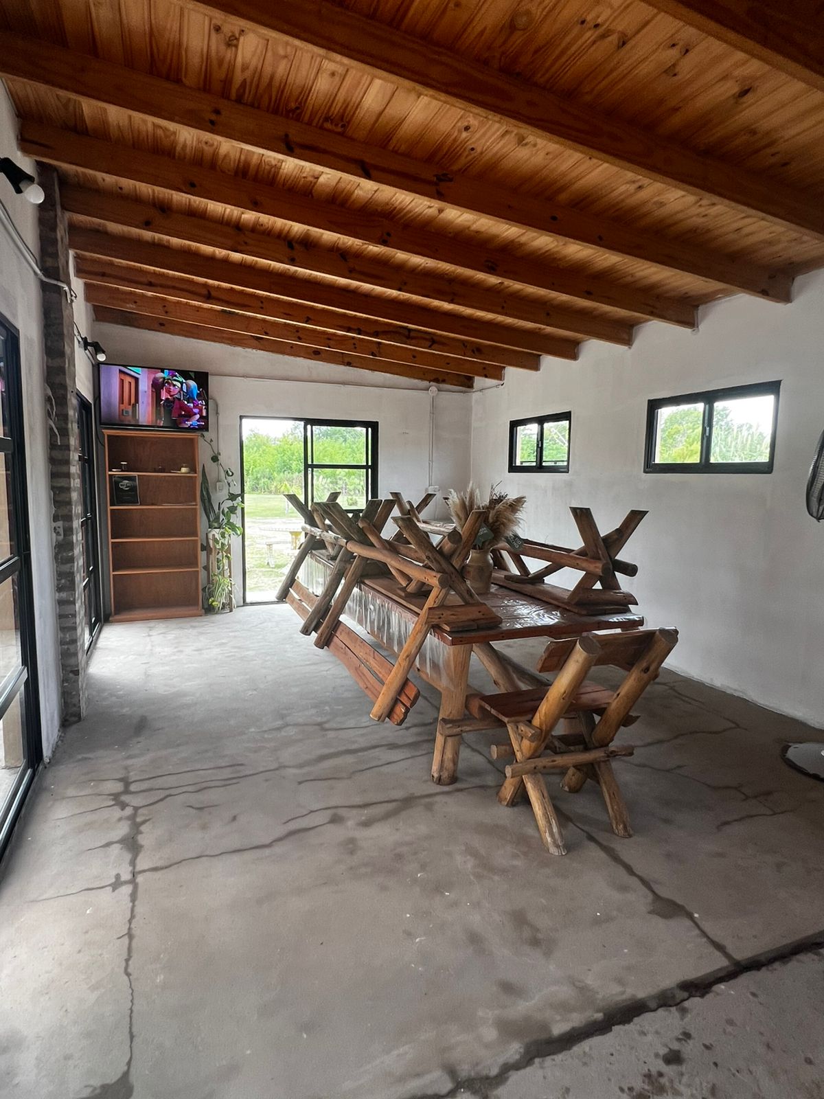 El Predio consiste en un gran parque con una construcción cerrada de baño y cocina – diseñado para dos baños y vestuario- y una parte, base de hormigón semicubierta, con barra, sin techar, de 12 x 6 mts.