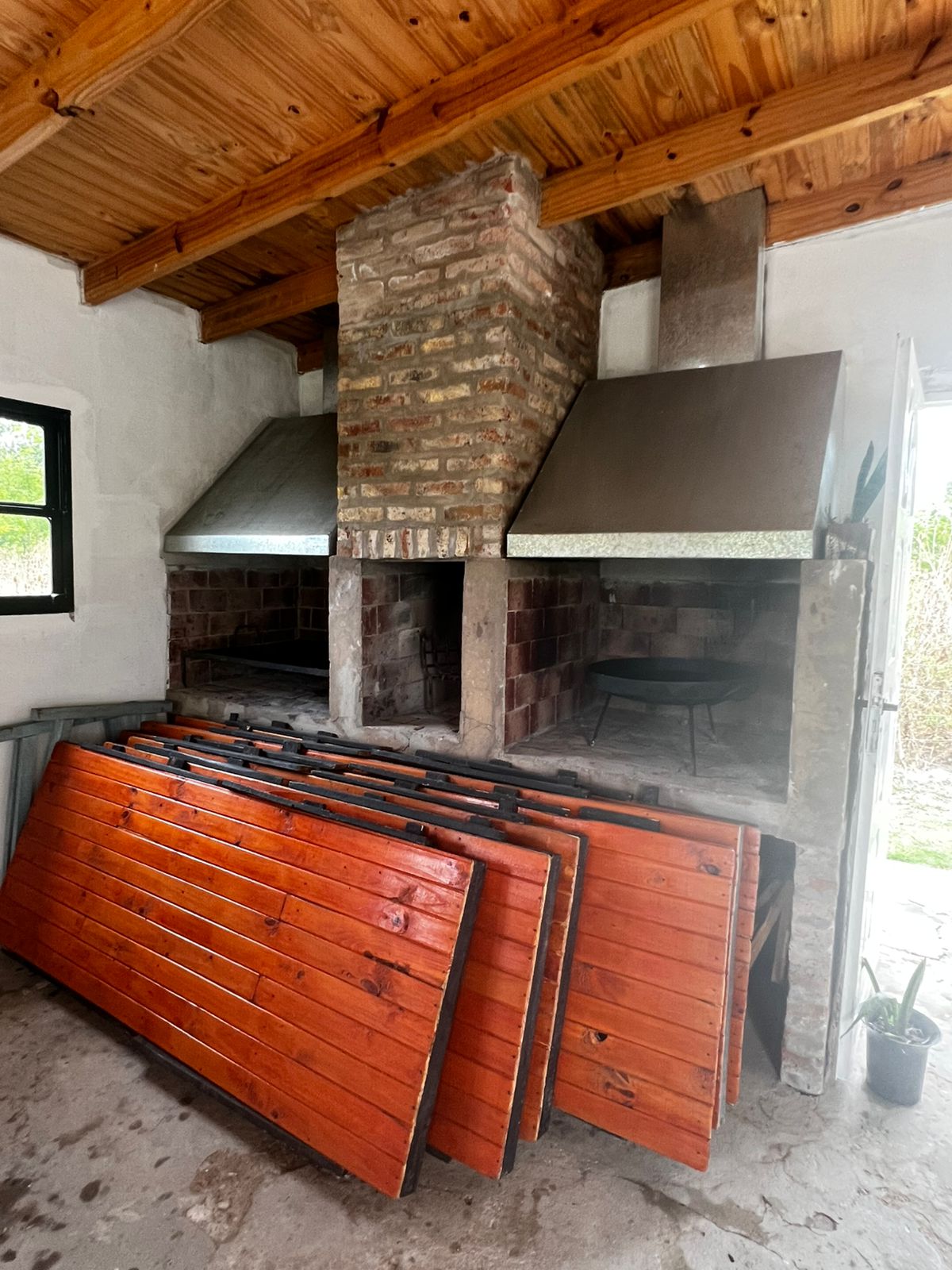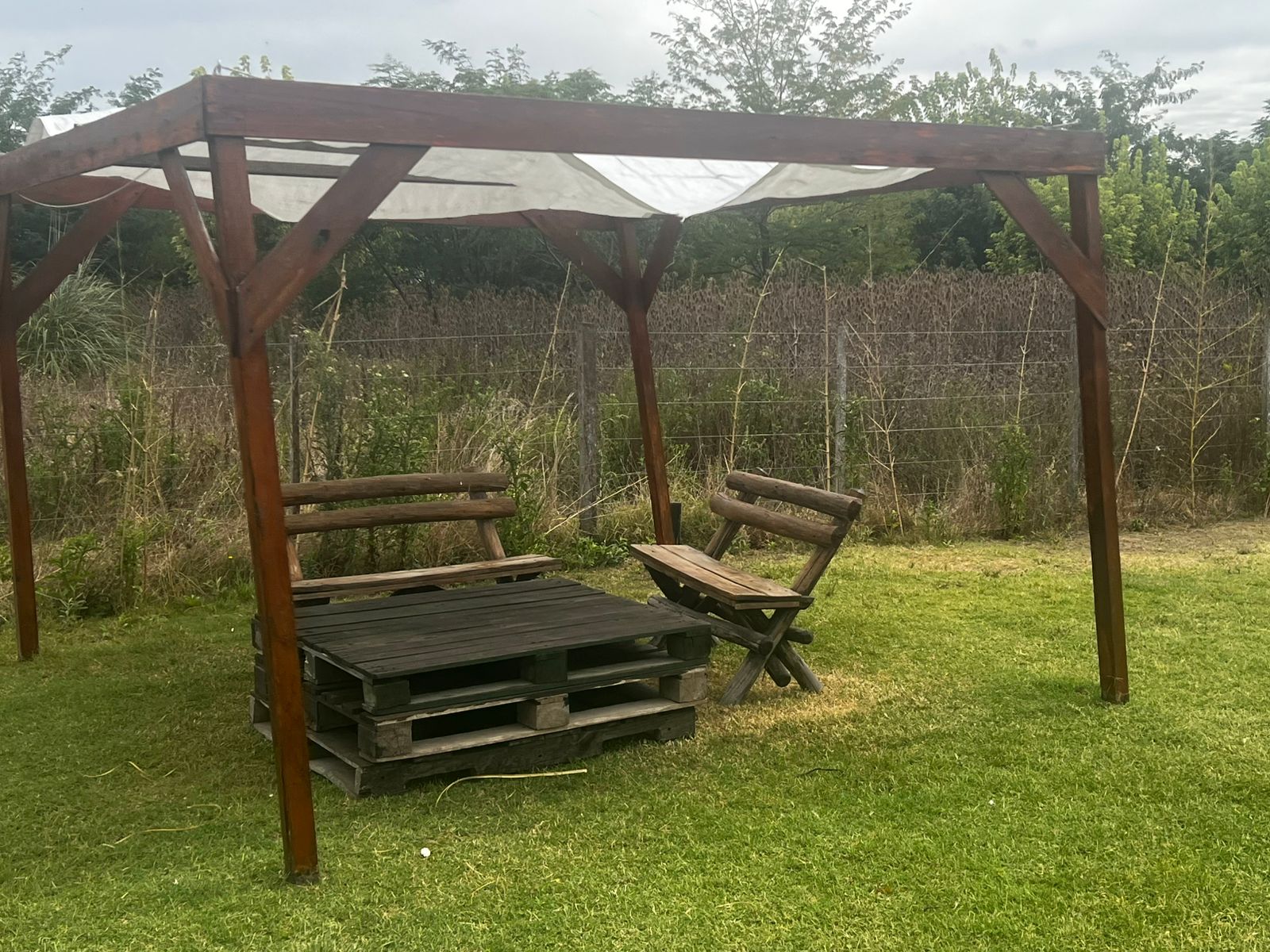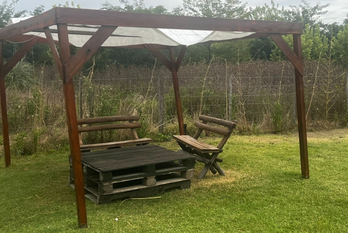 Parrilla, asador, 3 gacebos de madera con instalación de electricidad y mucho verde para soñar.