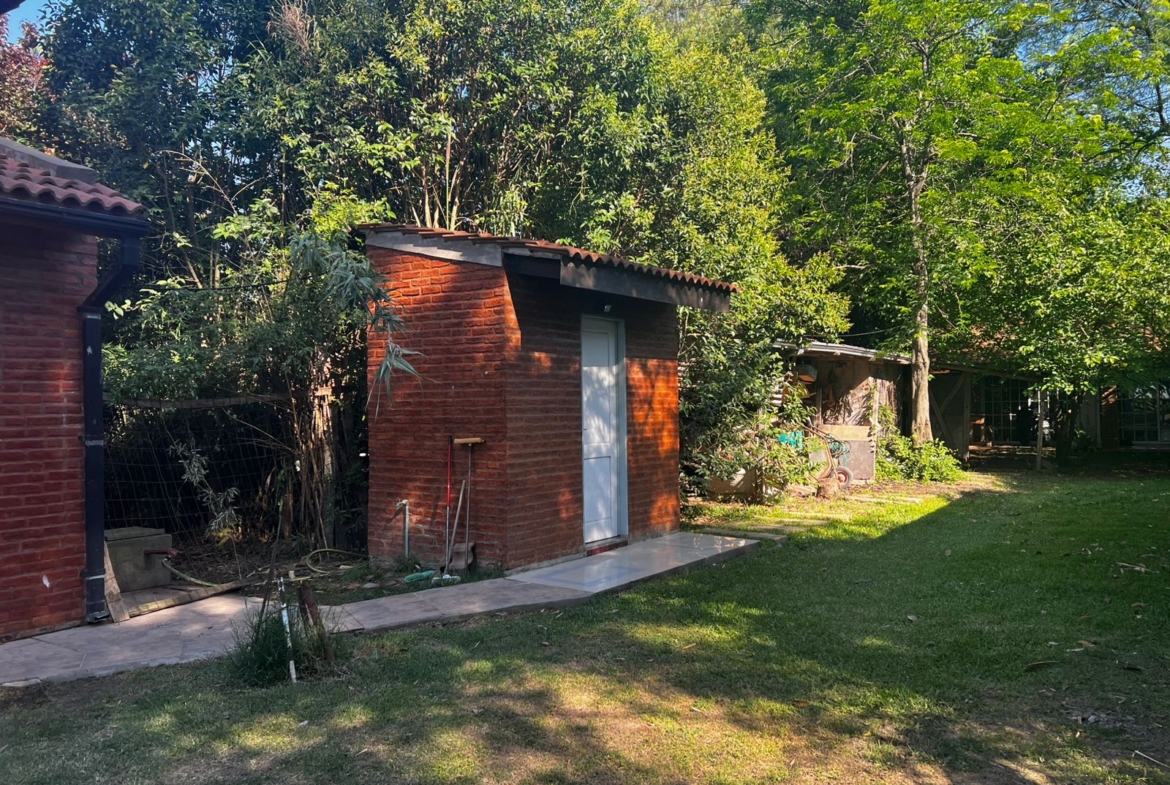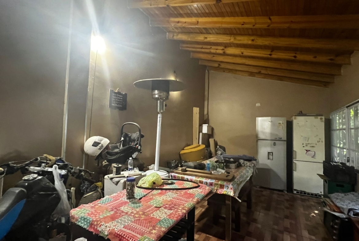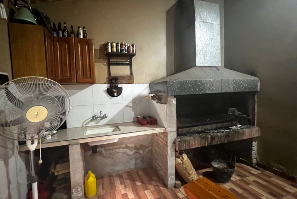 Hacia el fondo del terreno se encuentra un quincho independiente, ideal para reuniones y encuentros, equipado con parrilla, mesada y un baño exterior que brinda mayor comodidad. La propiedad dispone de electricidad, agua de perforación y gas envasado.