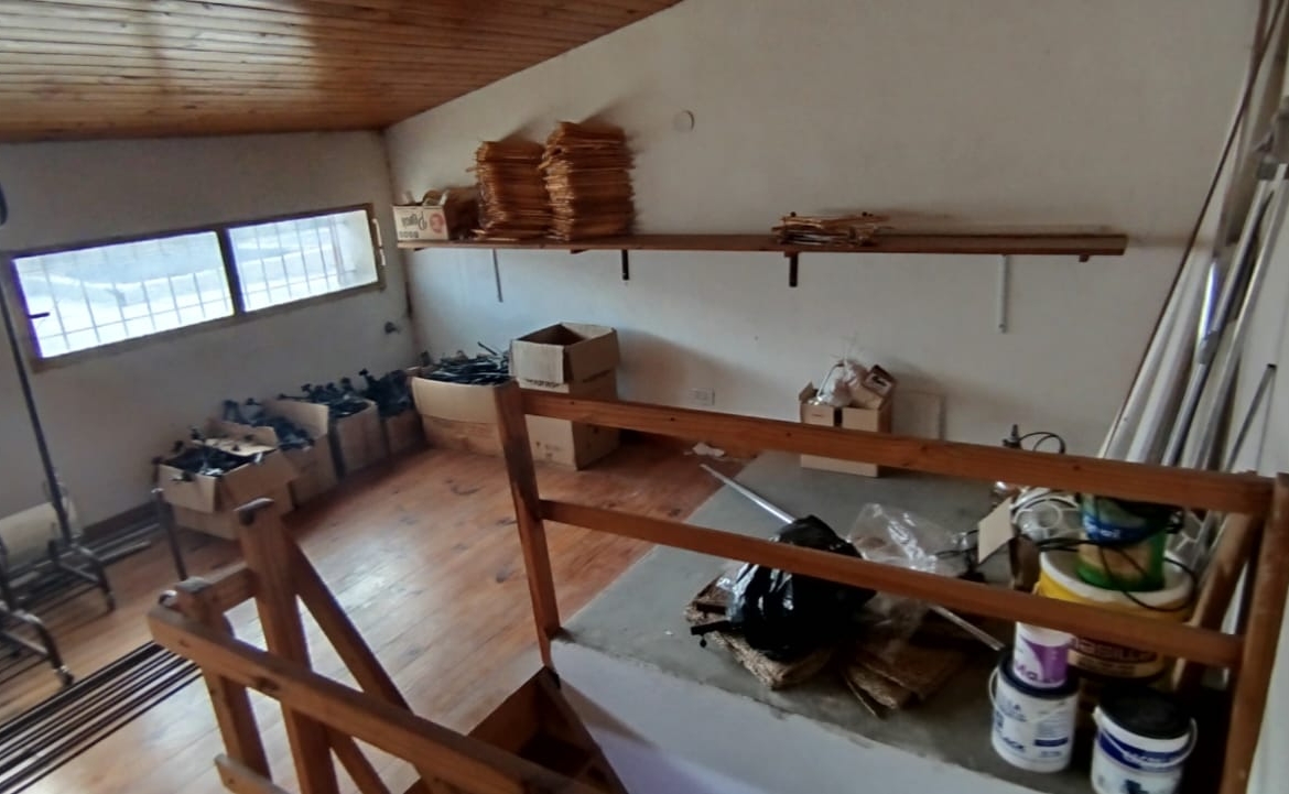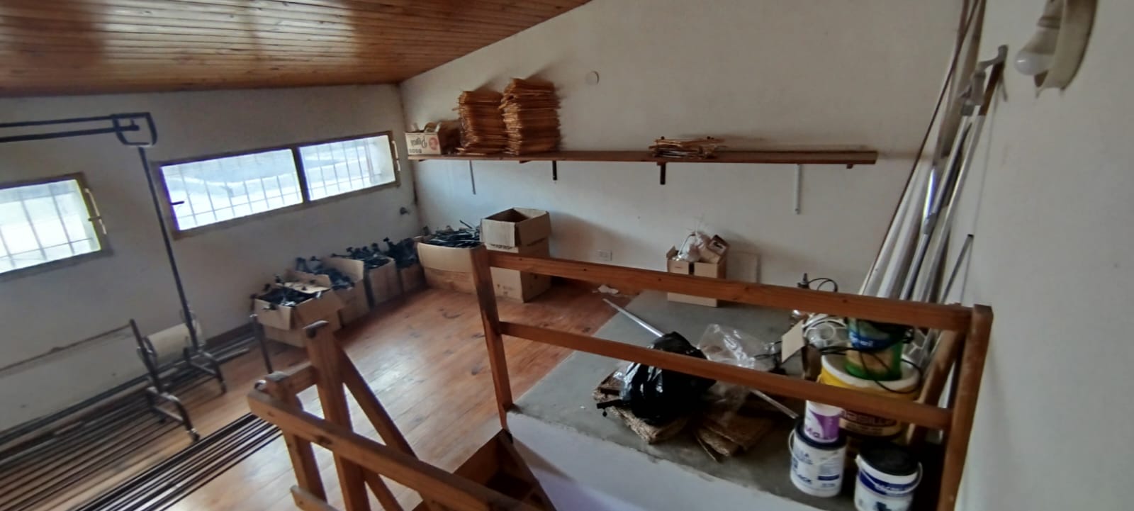 - Estanterías colgantes de madera y ménsulas en sector de depósito, 4 unidades, varios metros.